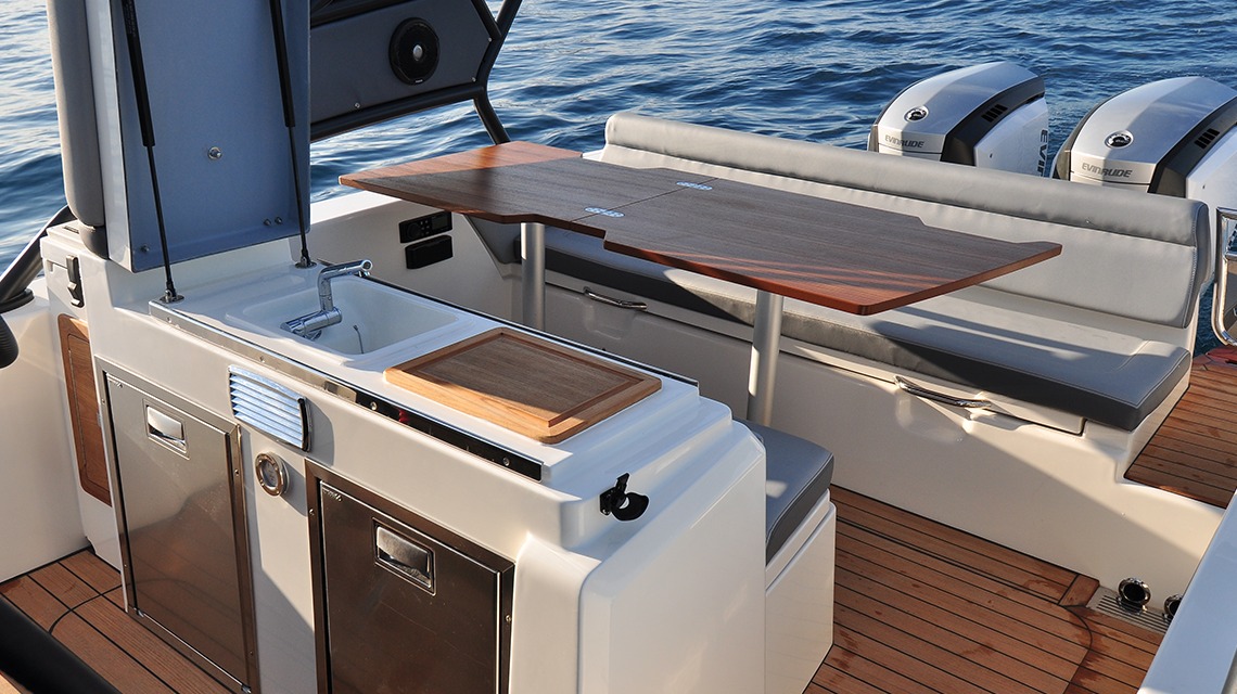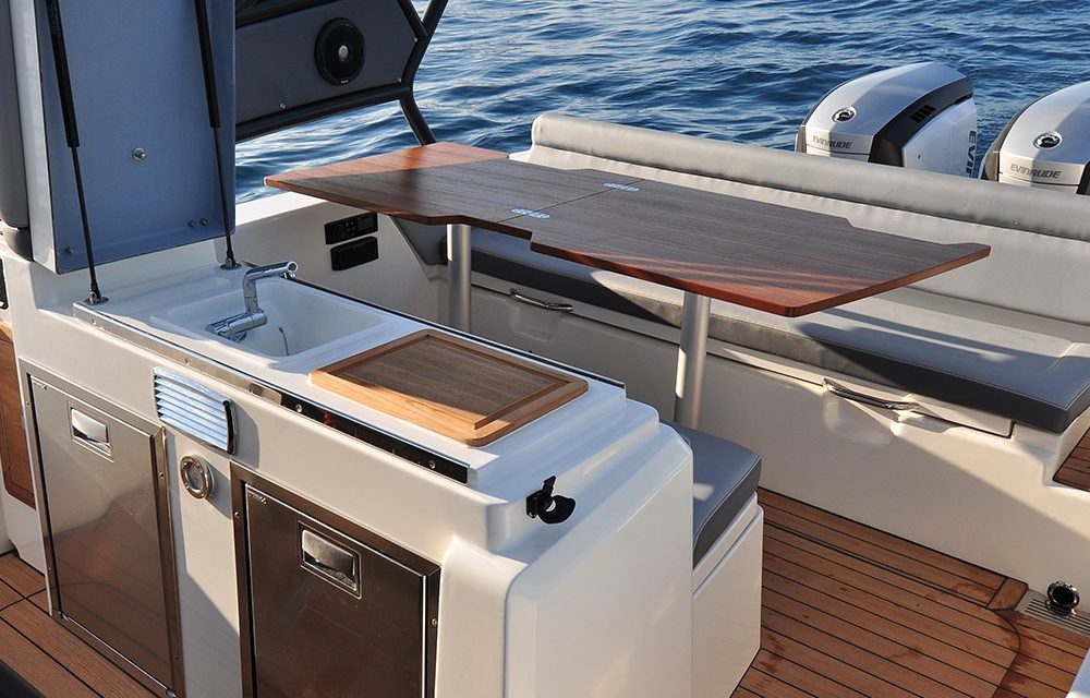 Con i suoi 9.30 metri di lunghezza offre diverse comodità: tendalino, frigobar, cabina matrimoniale, bagno separato, nella splendida cornice del suo design moderno e curato.